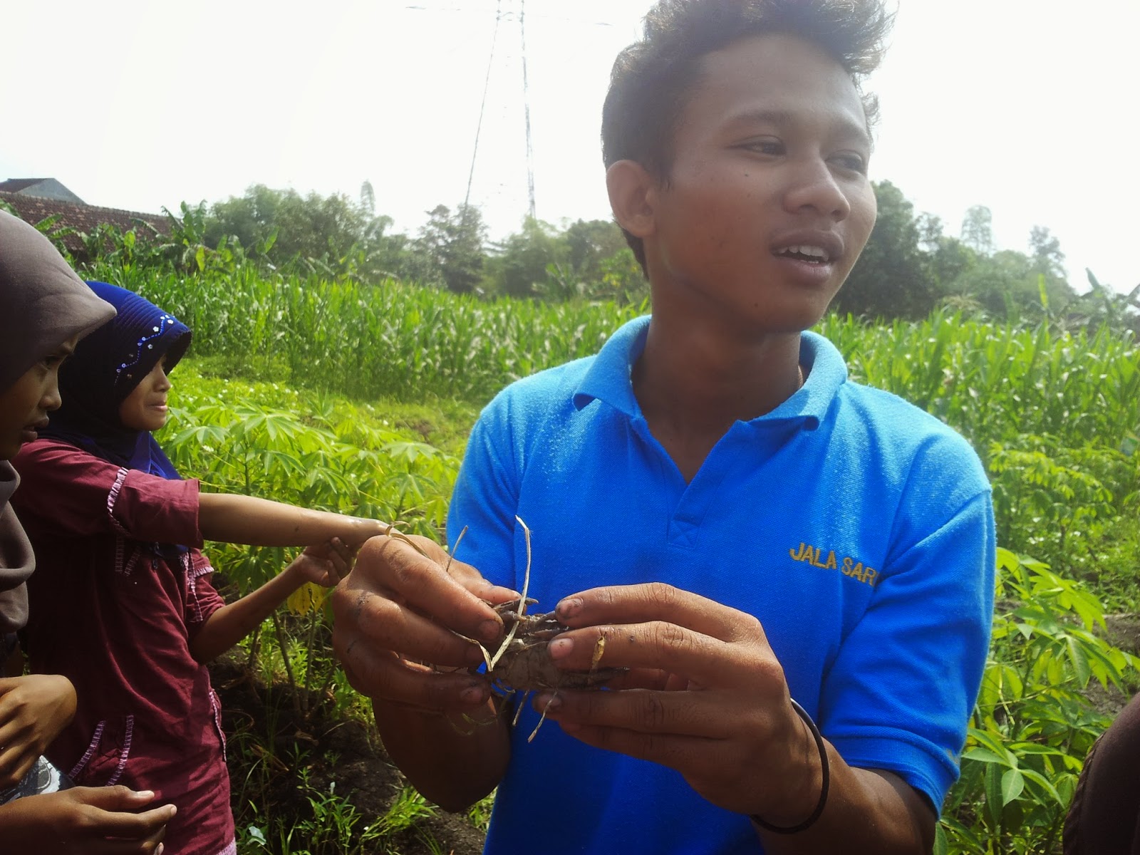 Semuanya terkejut saat beberapa peralatan tani dikeluarkan. Yap, outboundnya lebih kepada pengenalan pertanian kepada mereka. Mulai dari capil (topi tani), arit, bendo, gaman, cangkul, dan sebagainya. Selain dunia pertanian juga ada flying foxnya dan lebih seru ada sesi menangkap lele. Paling riuh, karena kelicinan tubuh ikan satu ini. Masing-masing kelompok melakukan kegiatan yang berbeda, sehingga bisa rolling semua kegiatannya.